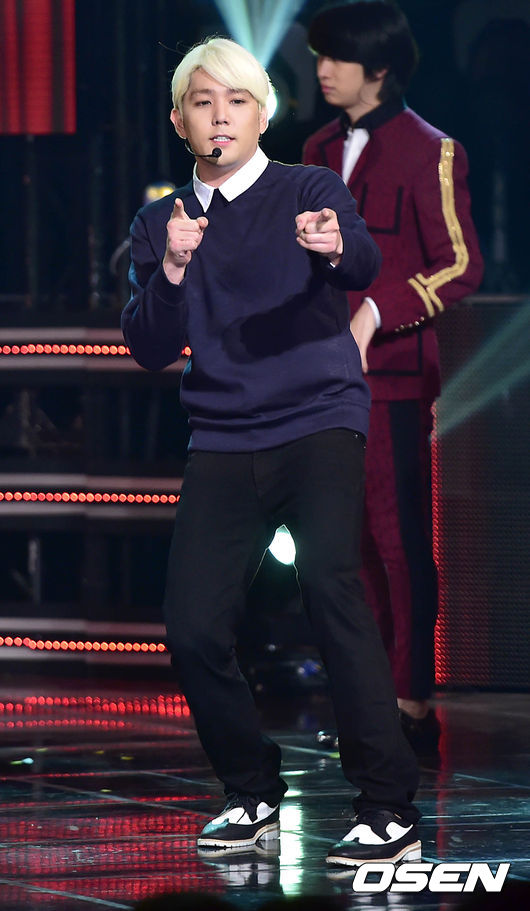 그룹 슈퍼주니어 강인이 화려한 무대를 펼치고 있다.