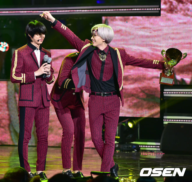그룹 슈퍼주니어 은혁이 앙코르 무대를 펼치고 있다.