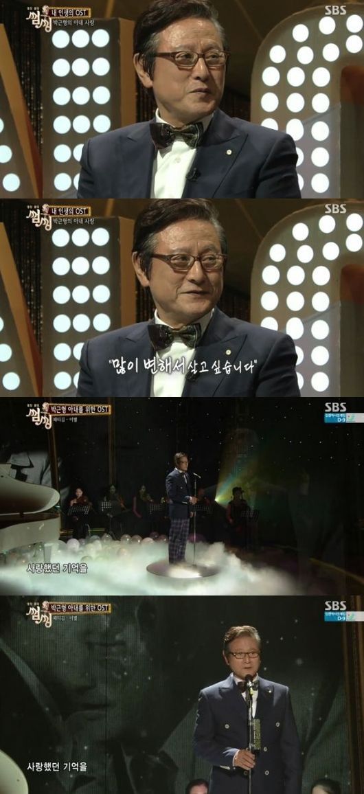 박근형은 10일 오후 방송된 SBS 추석 파일럿 예능프로그램 '열창클럽 썸씽'(이하 '썸씽')에서 아내를 위한 노래라는 패티김의 '이별'을 부르며 감동을 전했다.
