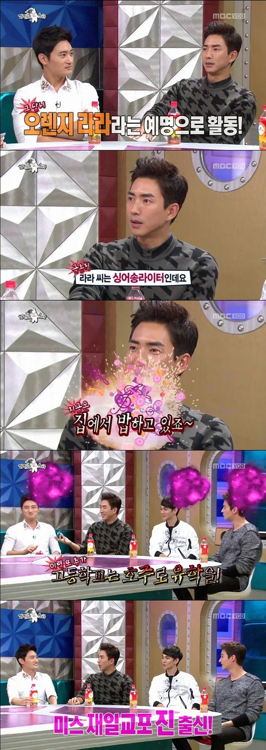 고세원은 “당시 소속사가 오렌지팩토리가 오렌지라라라는 예명으로 활동했다. 이제는 그 사무실과 일을 안해서 라라로 활동하고 있다”며 “싱어송라이터다. 1집에 ‘달링’이란 곡으로 인기를 조금 끌었는데 지금은 집에서 밥하고 있다”고 말해 웃음을 자아냈다.