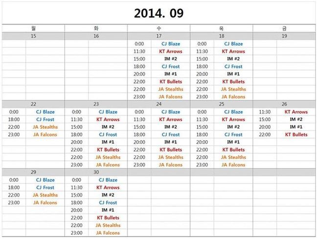 자세한 시간표와 진행하는 팀에 대한 정보는 첨부된 표와 같으며, 모든 스트리밍 서비스는 아주부TV(http://www.azubu.tv/)를 통해 정해진 시간대에 실시간으로 시청할 수 있다.