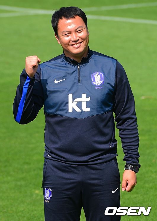 11일 경기도 파주 NFC(국가대표축구트레이닝센터)에서 진행된 한국 아시안게임 축구대표팀 포토데이 행사에서 이운재 코치가 포즈를 취하고 있다