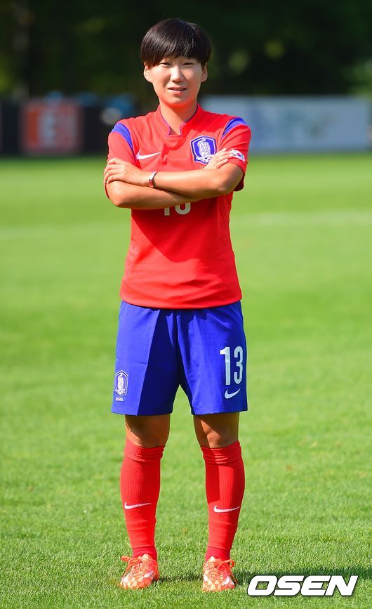 11일 경기도 파주 NFC(국가대표축구트레이닝센터)에서 진행된 한국 아시안게임 축구대표팀 포토데이 행사에서 권하늘이 포즈를 취하고 있다