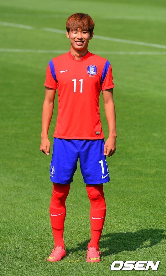 11일 경기도 파주 NFC(국가대표축구트레이닝센터)에서 진행된 한국 아시안게임 축구대표팀 포토데이 행사에서 윤일록이 포즈를 취하고 있다