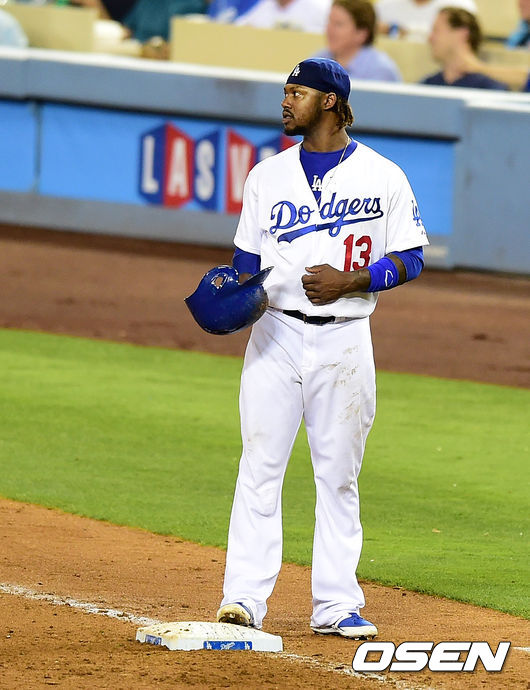6회말 2사 1루에서 다저스 라미레즈가 견제사를 당하고 아쉬워하고 있다.