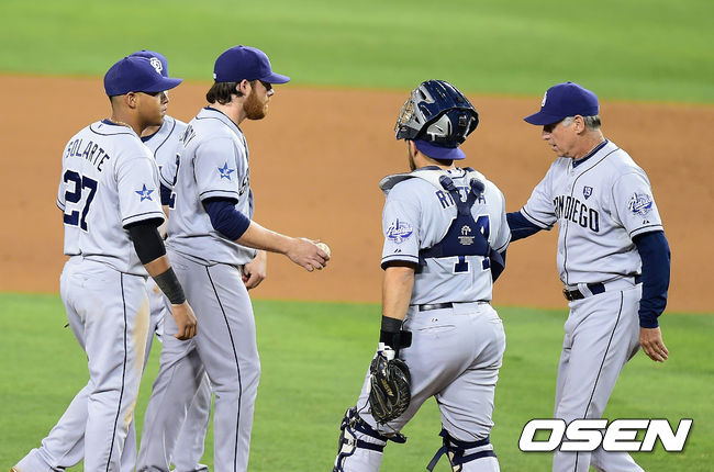 7회말 무사 1루에서 샌디에이고 케네디가 3실점을 허용하고 강판당하고 있다.