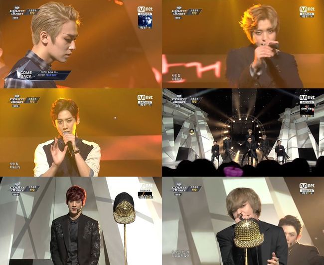 틴탑은 11일 오후 방송된 엠넷 '엠카운트다운'에서 신곡 '지독하다'와 '쉽지 않아'를 열창, 화려한 컴백을 알렸다.