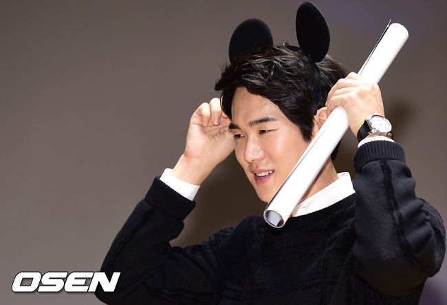 11일 오후 서울 성북구 성신여자대학교 운정그린캠퍼스 대강당에서 열린 영화 '제보자' 쇼케이스에서 배우 유연석이 머리띠를 하고 있다.