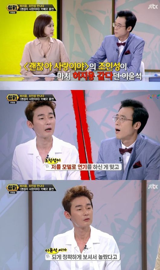 이윤석은 11일 방송된 JTBC '썰전' 예능심판자 코너에서 "지난 방송에서 '괜찮아 사랑이야' 조인성 캐릭터가 허지웅과 비슷하다고 해서 욕을 많이 먹었다"고 입을 열었다.