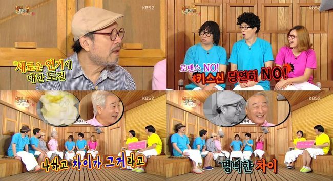이순재는 11일 오후 방송된 KBS 2TV 예능프로그램 '해피투게더3'에서 로맨스 연기를 해본 적 없다는 신구의 말에 "이게 나와의 차이다"라고 흐뭇해했다.