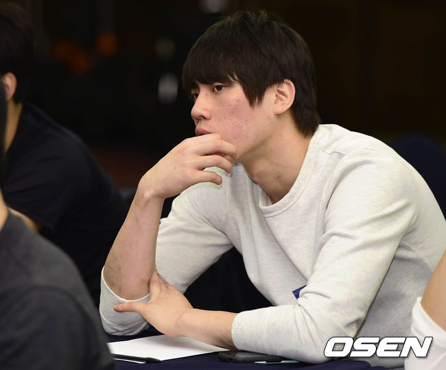 12일 서울 청담동 리베라호텔에서 열린 한국배구연맹(KOVO, 총재 구자준) '2014-2015시즌 신인선수 오리엔테이션'에서 드래프트 2순위로 OK저축은행에 입단한 박원빈이 자리하고 있다.
