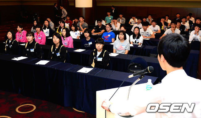 12일 서울 청담동 리베라호텔에서 열린 한국배구연맹(KOVO, 총재 구자준) '2014-2015시즌 신인선수 오리엔테이션'에서 신인선수들이 자리하여 교육 받고 있다.