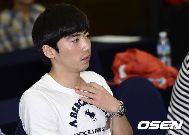 12일 서울 청담동 리베라호텔에서 열린 한국배구연맹(KOVO, 총재 구자준) '2014-2015시즌 신인선수 오리엔테이션'에서 드래프트 1순위 오재성이 자리하고 있다.