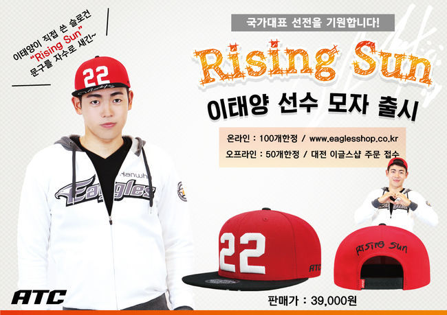 한화 이글스는 2014 인천 아시안게임을 앞두고 있는 투수 이태양(24)의 선전을 기원하며 'Rising Sun'모자를 출시한다.