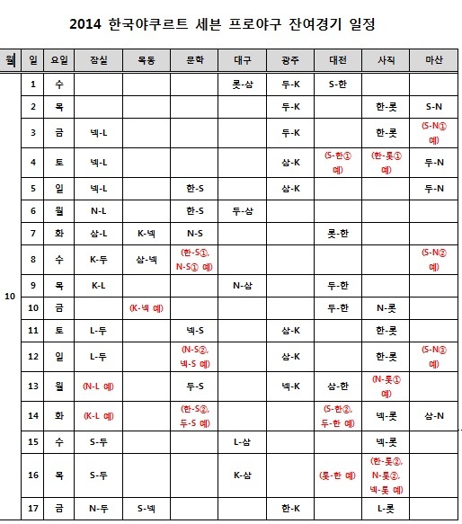 한국야구위원회(KBO)는 오는 11일까지 우천 순연된 43경기와 미편성된 8경기를 합한 총 51경기에 대한 일정을 확정했다.