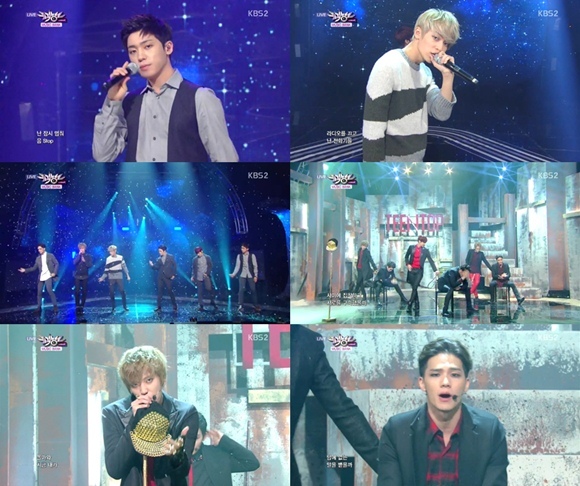 틴탑은 12일 오후 방송된 KBS 2TV '뮤직뱅크'에 출연해 신곡 '쉽지않아'의 무대를 공개했다.