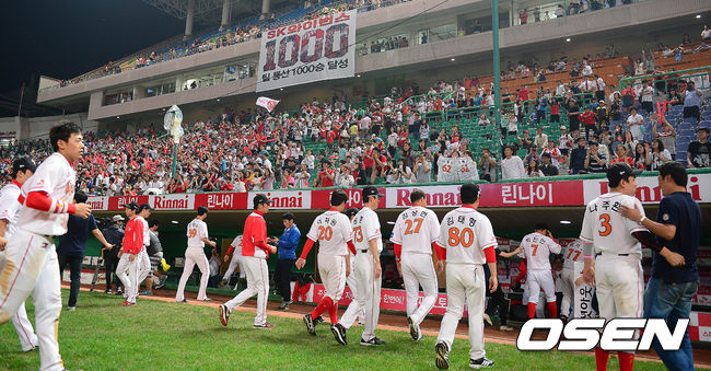 경기종료후 SK 와이번스 1000승을 팬과 선수들이 함께 기뻐하고 있다./greenfield@osen.co.kr