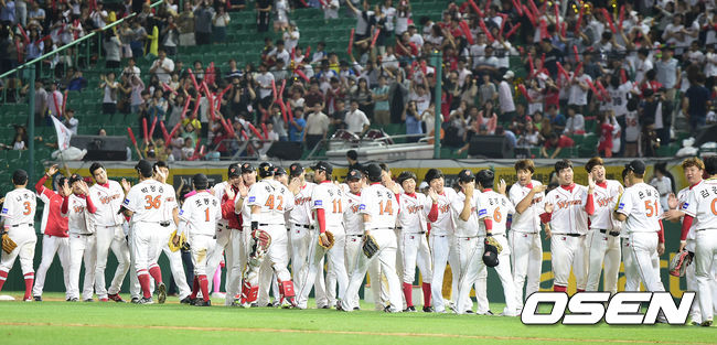 경기종료후 SK와이번스 선수들이 1000승 달성에 기쁨을 나누고 있다./greenfield@osen.co.kr