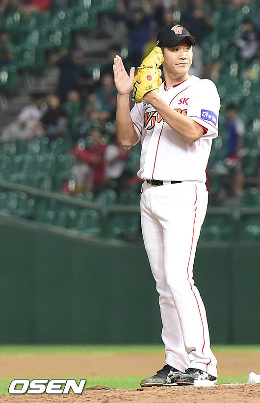 9회말 SK윤길현이 마지막 아웃 카운트를 잡고 박수 치고 있다./greenfield@osen.co.kr
