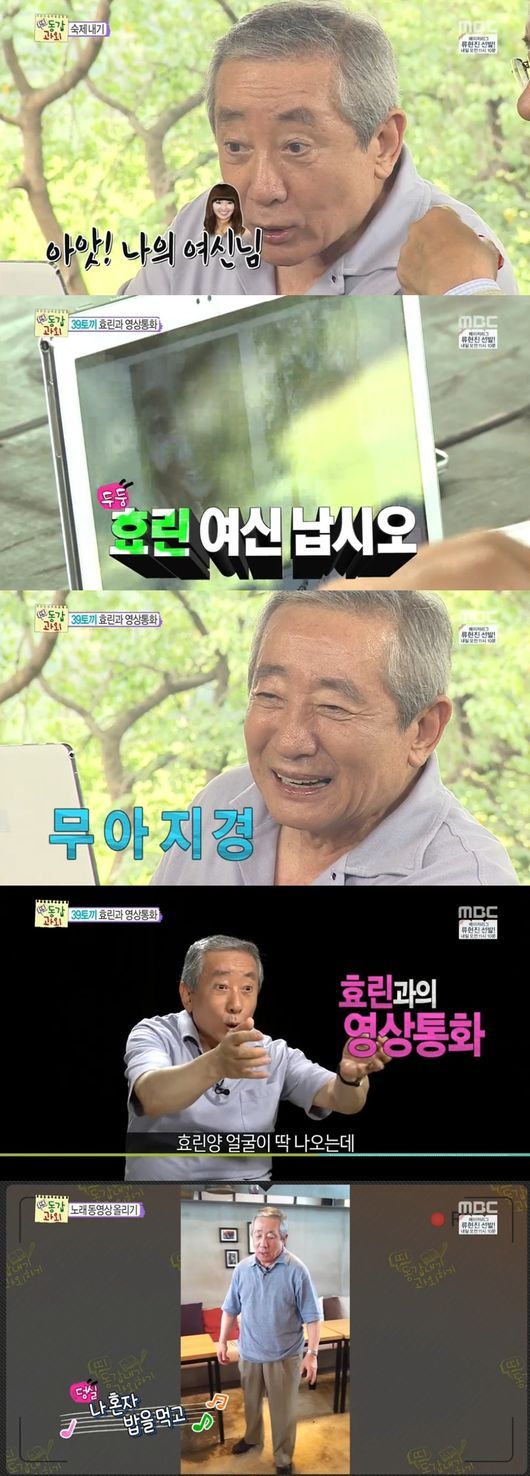배우 송재호가 씨스타 효린과 영상통화를 하며 함박 웃음을 지었다.