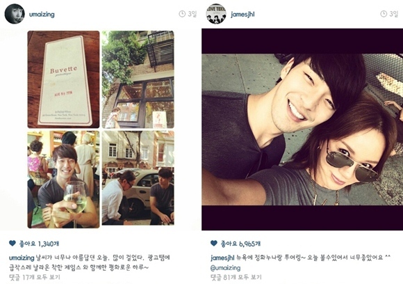 엄정화가 게시한 사진들 속에는 편한 차림의 제임스가 와인잔을 든 채 환하게 웃고 있고, 뉴욕의 빈티지한 거리에서 제임스가 정재형과 함께 담소를 나누는 모습이 담겨 있다.