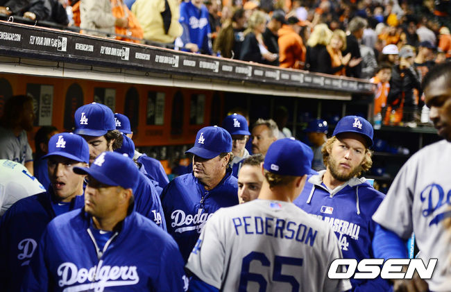 경기후 다저스 허니컷 코치를 비롯해 선수들이 아쉬운 표정으로 더그아웃을 나서고 있다. /jpnews@osen.co.kr