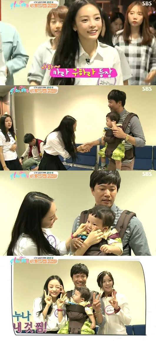 김정민, 담율은 13일 오후 방송된 SBS 예능프로그램 '오 마이 베이비'에서 구하라와 조우하고 환한 미소를 감추지 못했다.