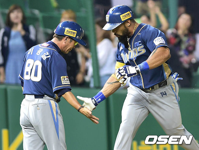 나성범과 테임즈는 13일 문학구장에서 열린 SK와의 경기에서 1-4로 뒤지던 6회 SK 선발 여건욱을 상대로 연속타자 홈런을 터뜨렸다. 나성범은 무사 1,2루에서 좌월 3점 홈런(시즌 29호)을 쳤고, 이어 테임즈는 우측 담장을 넘기는 솔로포(시즌 31호)로 승부를 뒤집었다. 테임즈는 이 홈런으로 박병호(넥센)을 제치고 타점 단독 선두로 올라섰다.