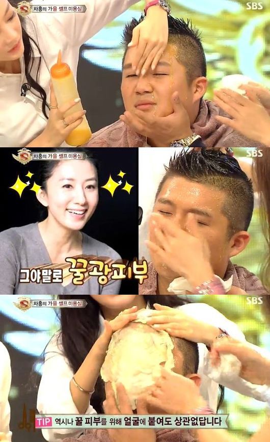 이날 방송에서 조세호는 카라 구하라의 손길로 머리에 꿀과 달걀로 만든 팩을 하기로 했다. 그러나 서툰 솜씨의 구하라는 조세호의 얼굴까지 팩이 흐르도록 한 것. 그러자 출연진은 "팩을 얼굴에 발라도 된다"면서 그의 얼굴에 팩을 펴 발랐다.