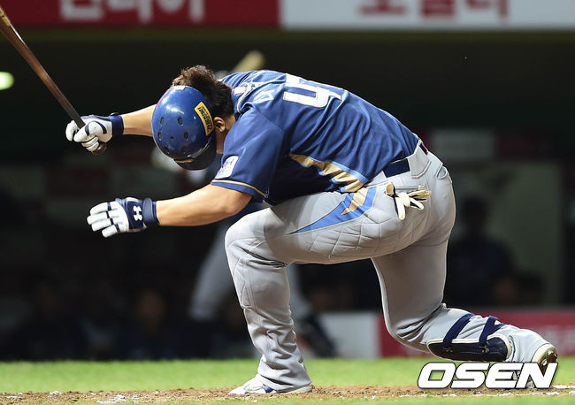 진해수(SK)가 던진 공이 나성범(NC)의 머리 쪽으로 향했다. 규정에 따라 진해수는 퇴장 처분을 받았다.