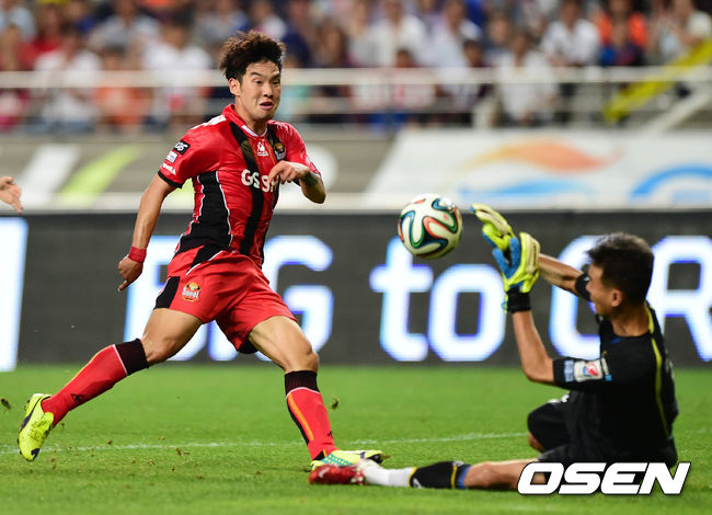 13일 오후 서울월드컵경기장에서 열린 '현대오일뱅크 K리그 클래식 2014' FC 서울과 인천 유나이티드의 경기 전반 최정한이 골을 넣고 있다.