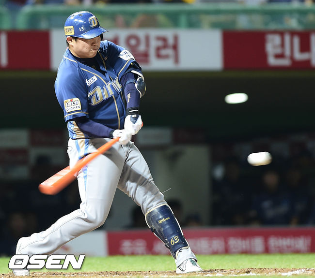 13일 오후 인천 문학구장에서 열린 '2014 한국야쿠르트 세븐 프로야구 SK 와이번스와 NC 다이노스의 경기, 7회초 2사 만루, NC 권희동이 싹쓸이 3루타를 치고 있다.