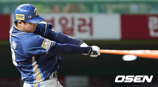 13일 오후 인천 문학구장에서 열린 '2014 한국야쿠르트 세븐 프로야구 SK 와이번스와 NC 다이노스의 경기, 7회초 2사 만루, NC 권희동이 싹쓸이 3타점 3루타를 치고 있다.