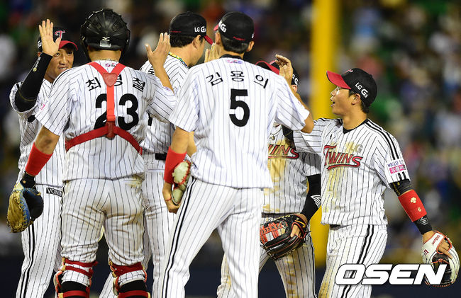 경기 종료 후 LG 선수들이 마운드에서 하이파이브를 나누고 있다./dreamer@osen.co.kr