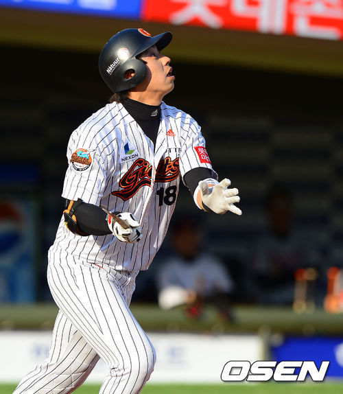 롯데 타선은 9회말 2사 후에야 깨어났다. 4-1로 뒤진 가운데 강민호가 몸에 맞는 공을 얻어내 출루에 성공했다. 강민호는 대주자 오승택으로 교체됐고, 타석에는 문규현 대신 대타 박준서가 등장해 중전안타로 출루했다. 다시 박준서는 대주자 백민기로 바뀌었고, 김민하 타석에서 대타 김대우가 나왔다. 김대우는 침착하게 이용찬의 포크볼을 골라냈고 폭투까지 겹쳐 롯데는 2,3루에 주자가 장전됐다. 그리고 김대우는 바깥쪽 공을 욕심부리지 않고 가볍게 밀어쳐 2타점을 올렸다.