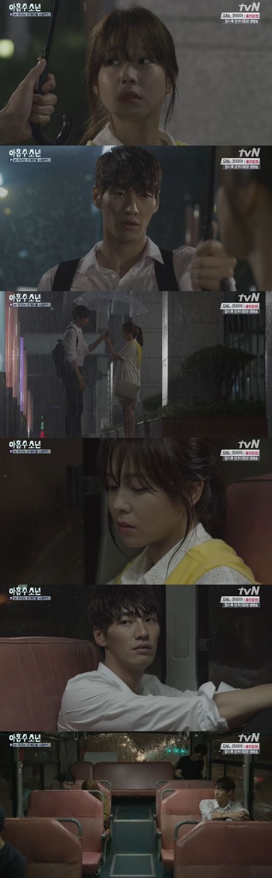 13일 오후 방송된 tvN '아홉수소년'(극본 박유미, 연출 유학찬) 6회 '나는 외계인을 사랑한다' 편에서는 고백 후 관계가 어색해진 강진구(김영광 분)와 마세영(경수진 분)의 모습이 그려졌다.