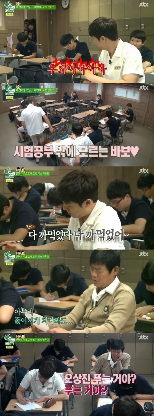 전학생 소개와 함께 곧장 치뤄진 주초고사에서 이름 외에는 백지 상태의 답안을 유지하던 성동일과 달리 오상진은 "너무 어렵다"고 말하면서도 막힘없이 문제를 풀며 빼곡하게 답안을 작성했다.