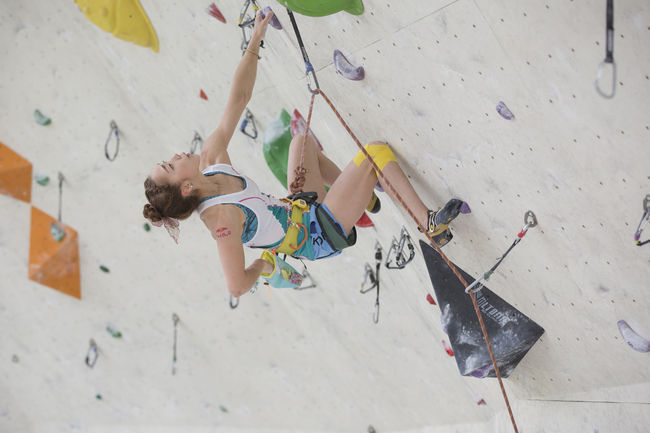 김자인은 13일(이하 한국시간) 스페인 히혼 팔라시오 데 데포르테스 체육관에서 열린 국제스포츠클라이밍연맹(IFSC) 세계선수권대회 리드(난이도) 부문에서 아낙 베르호벤(18, 벨기에)과 함께 공동 1위로 결승에 진출했다.