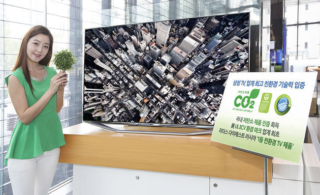 삼성전자는 자사 TV가 국내 저탄소 인증, 미국 UL의 ECV 환경 마크를 획득했다고 14일 발표했다. 뿐만 아니라 러시아에서는 유럽 소비자가 뽑은 제 1위 친환경 제품으로 선택되었다고 밝혔다.