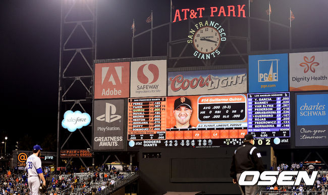 다저스는 14일(이하 한국시간)캘리포니아주 샌프란시스코 AT&T파크에서 열린 샌프란시스코 자이언츠와 원정경기에서 홈런 3개 포함 장단 24안타를 퍼부으면서 17-0으로 대승을 거뒀다. 다저스의 올 시즌 한 경기 최다득점이자 AT&T파크가 문을 연 2000년 이래 원정팀이 거둔 최다 득점기록이다. 다저스는 6월 1일 피츠버그 파이어리츠전에서 거둔 12득점이 종전 올시즌 경기최다득점이었다.