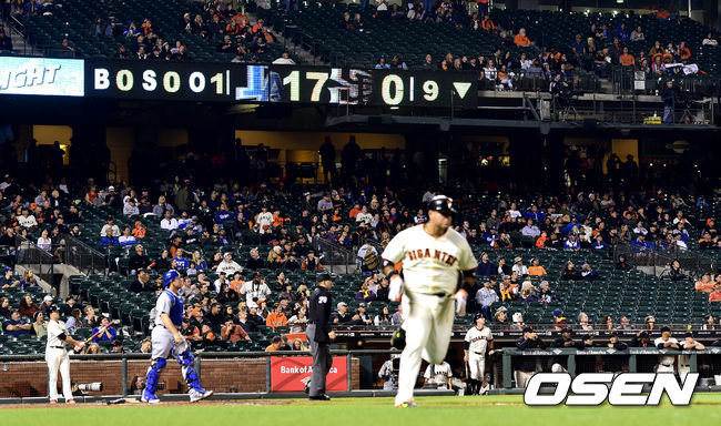 9회말 1사에서 샌프란시스코 퀴로즈가 유격수 플라이로 물러나고 있다. /jpnews@osen.co.kr