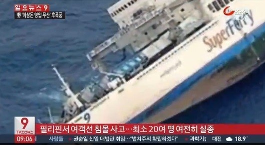 필리핀서 지난 13일 오후 여객선 한 척이 침몰하는 사고가 발생, 최소 30여 명이 사망하고 70명이 실종된 것으로 알려졌다.