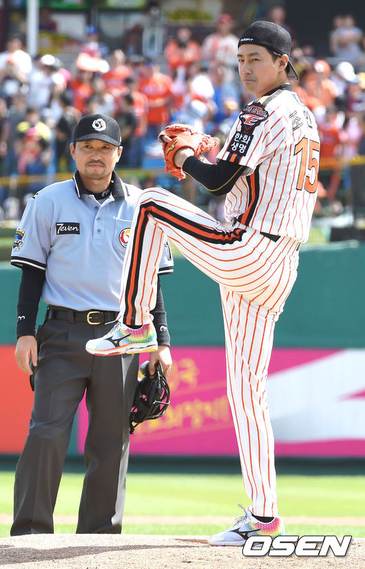 특히 이날 한화는 배우 조인성이 시구를 할 예정으로 며칠 전부터 상당한 열기를 자랑했다. 어릴 때부터 한화팬이었다는 조인성도 등번호 15번이 달린 한화 레전드 유니폼을 입고 그라운드에 모습을 드러내며 팬들로부터 열렬한 환호를 받았다.