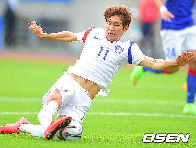 14일 오후 인천 문학경기장에서 열린 2014 인천 아시안게임 남자 축구 A조 조별리그 1차전 한국과 말레이시아의 경기 전반 윤일록이 슛을 시도하고 있다.