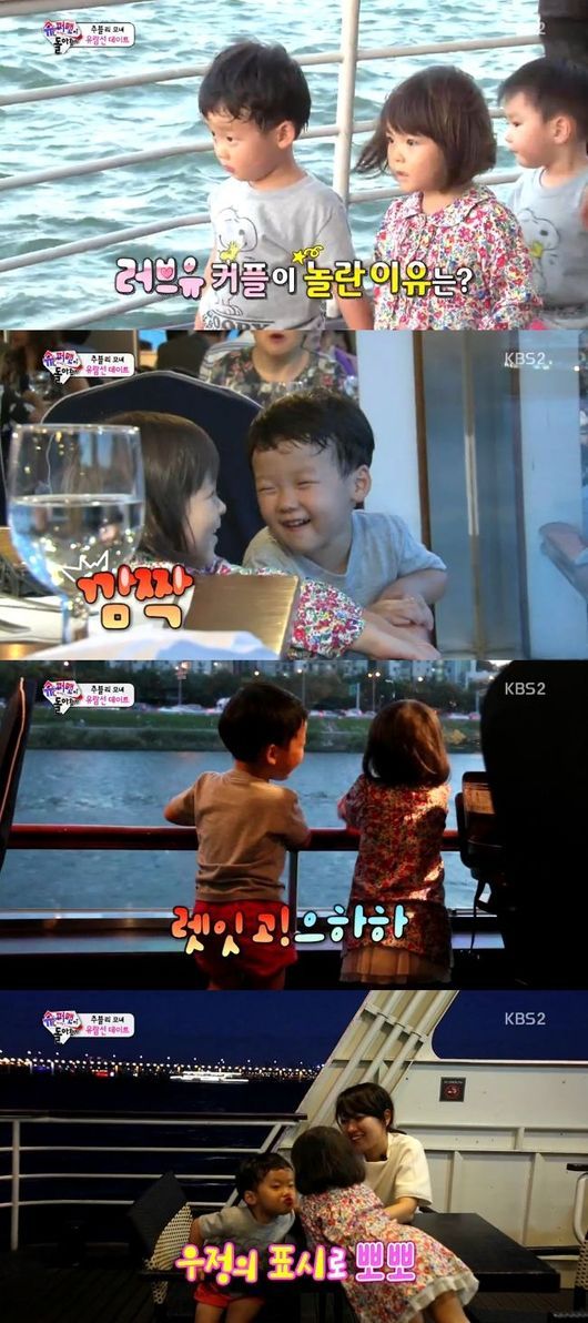 사랑이와 유토는 14일 오후 4시 50분 방송된 KBS 2TV '해피선데이-슈퍼맨이 돌아왔다'에서 스튜디오 녹화를 끝낸 뒤 한강에서 데이트를 즐겼다.
