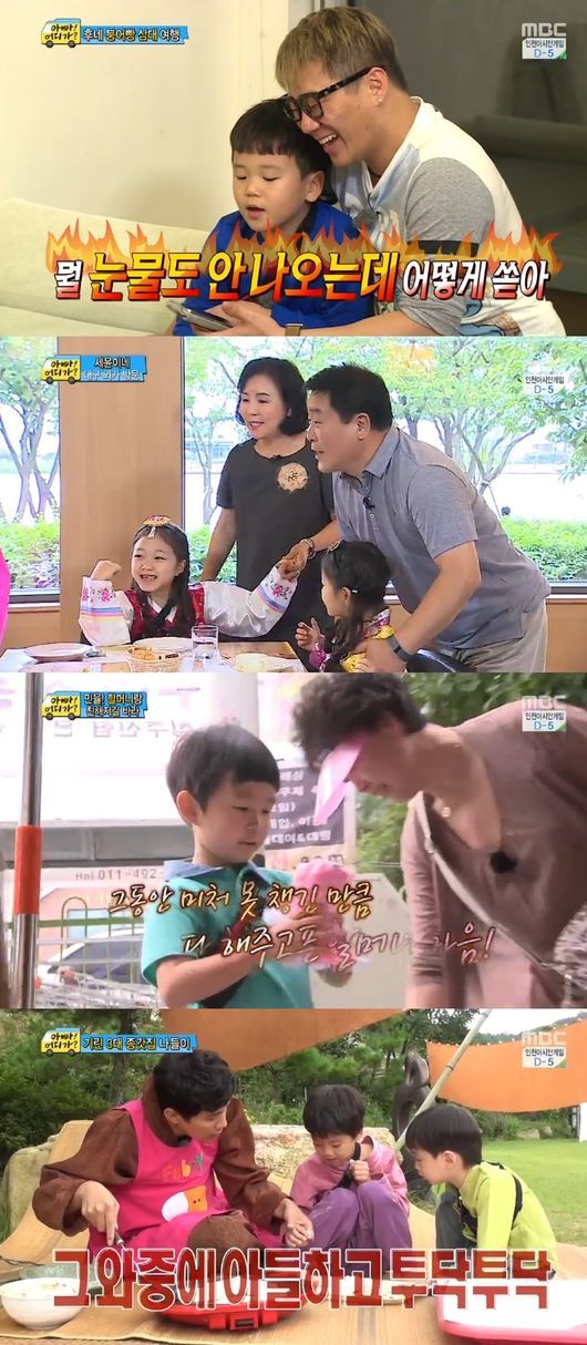 14일 방송된 MBC 예능프로그램 ‘일밤-아빠 어디가’는 정웅인, 김성주, 류진, 윤민수 가족이 추석을 보내는 모습이 그려졌다.