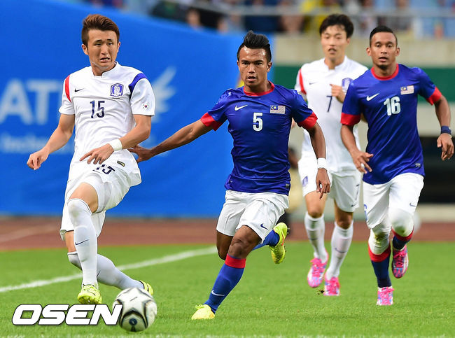 14일 오후 인천 문학경기장에서 열린 2014 인천 아시안게임 남자 축구 A조 조별리그 1차전 한국과 말레이시아의 경기 전반 임창우가 문전돌파를 시도하고 있다.