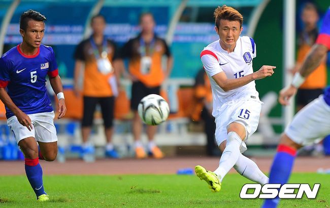 14일 오후 인천 문학경기장에서 열린 2014 인천 아시안게임 남자 축구 A조 조별리그 1차전 한국과 말레이시아의 경기 후반 임창우가 슛을 시도하고 있다.
