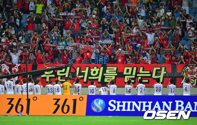 경기종료 후 축구대표팀이 팬들에게 인사를 하고 있다. /soul1014@osen.co.kr