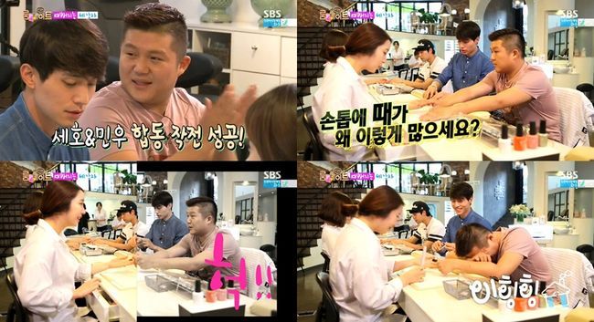 14일 오후 방송된 SBS 예능프로그램 '일요일이 좋다-룸메이트(이하 '룸메이트')'에서는 네일케어를 받는 이동욱, 조세호, 박민우의 모습이 그려졌다.